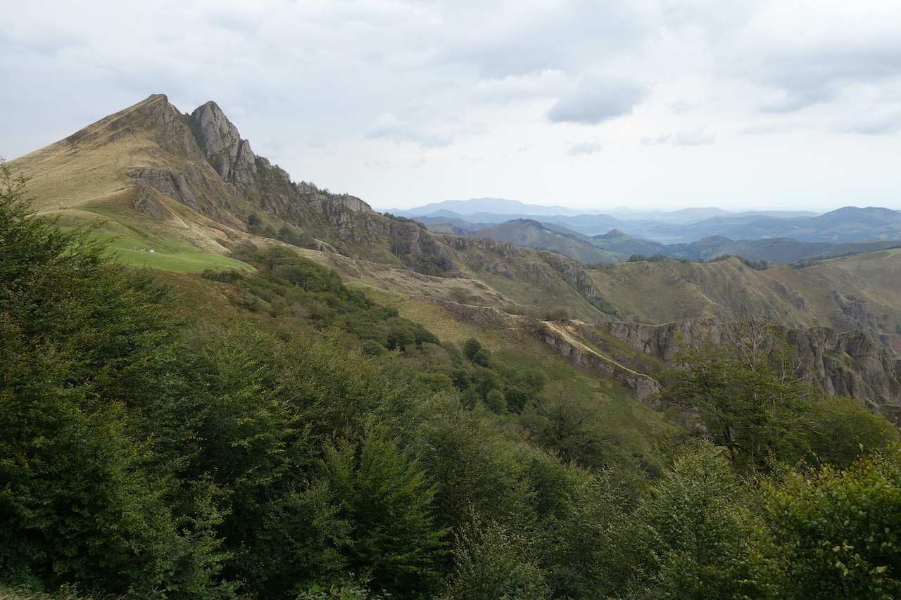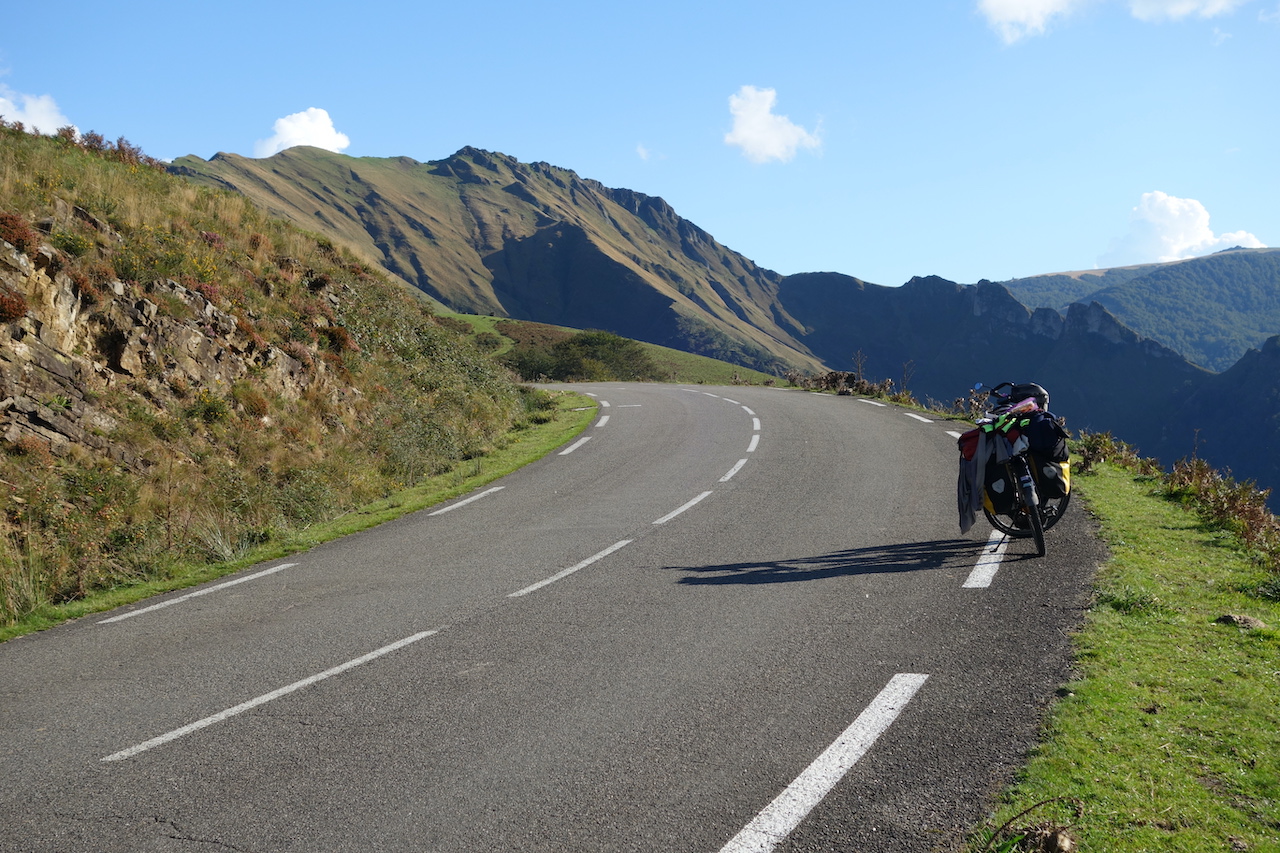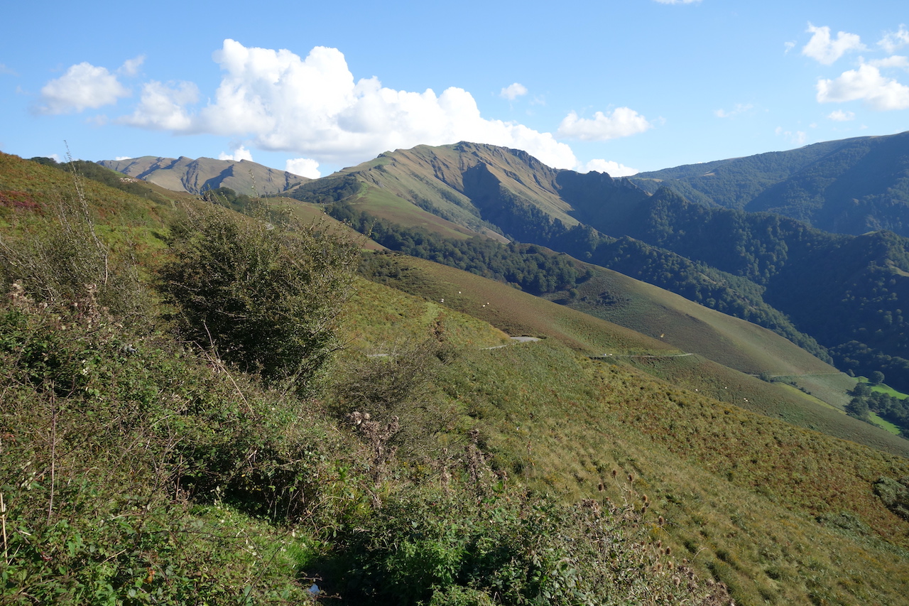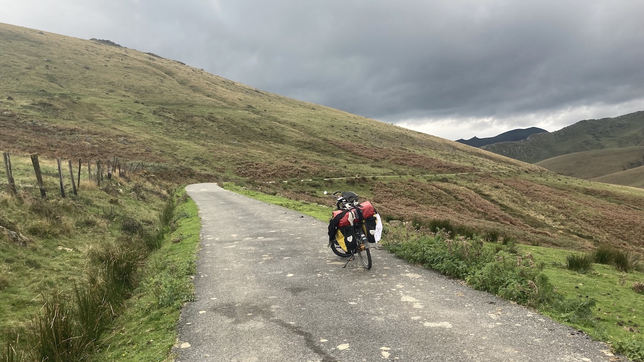 Names of villages give away that I have entered the French Basque Country which is just like her Spanish neighbor a super, super beautiful region. You just need to be lucky with the weather. And today, I am lucky. Highlight of the day is climbing up the (in)famous Col de Burdinkurutxeta. Infamous, yes, with long sections between 10 and 14%, but totally worth it, especially as you go higher, and the hills become more and more barren. About three kilometer after Burdinkurutxeta is the Aterbea shelter where you are allowed to pitch your tent right next to the Urbeltza river. At an altitude of 1.000 meter, it gets cold and humid at night. I was the only one in a tent. There were a few motorhomes up here as well.