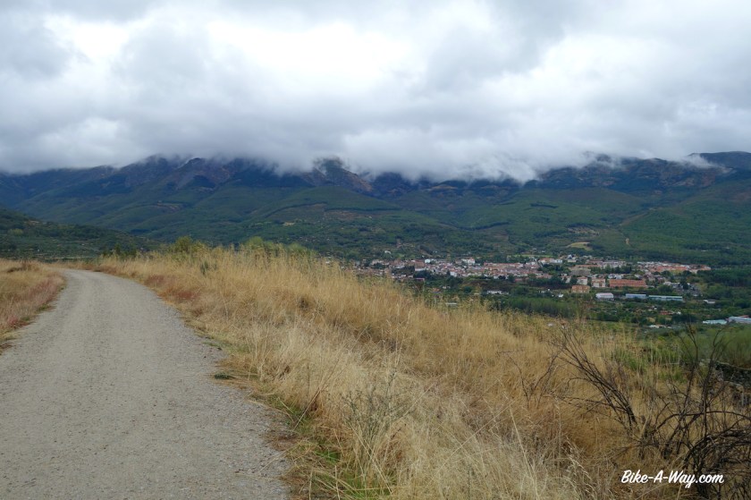 Approaching Hervas. Sierra de Béjar in the clouds.