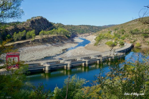 This is an interesting story: Just before the confluence of the Tiétar and Tajo River, each river has a dam, the Torrejón Tajo and the Torrejón Tiétar. Both dams are connected by a central tunnel with a width of 20 meters, 100 meters in length and a maximum height of 40 meter ! The development is formed of two reservoirs and two dams, one on each river, with the power plant in-between. The water impounded by the Tajus Dam flows towards the power plant’s turbines, makes them rotate and converts the stored waters’ potential energy into kinetic energy. The turbines turn the generator as they rotate to produce electricity that is transported by power lines to consumer areas. The particular thing about this power plant is that it is reversible ! This means that besides transforming the potential energy of the water into electricity, it can also do the opposite. In other words, it can increase the waters’ potential energy by pumping it from the Tiéjar Reservoir to the Tajus Reservoir, located 20 meter above it, using electricity. This method helps meet demand for power at peak times and store power during off-peak hours. Pretty ingenious, no ? In the picture is the dam on the Tiéjar River.