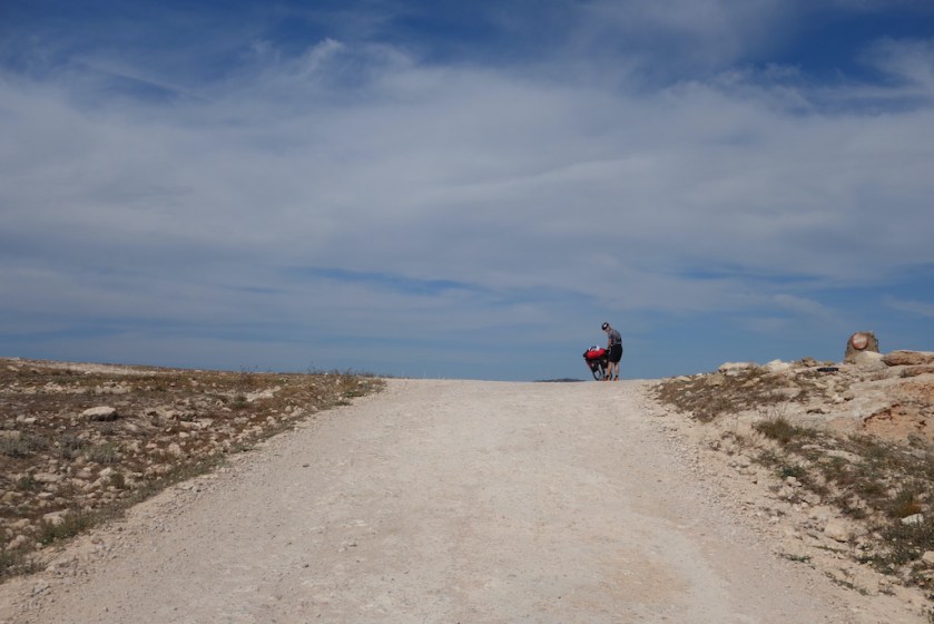 Approaching a hill top near a quarry, north of Caudete.