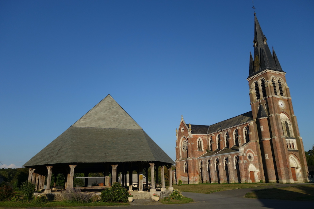 Saint-Jean-aux-Bois, a tiny village in northern France has this huge church, whith’La Halle’ just nxct to it. The covvered halle is 120 m2 big and was built in 1752. The church is not that old, from 1820. But all this for a village that had, it’s 11 hamlets included, only 766 inhabitants in 1839.