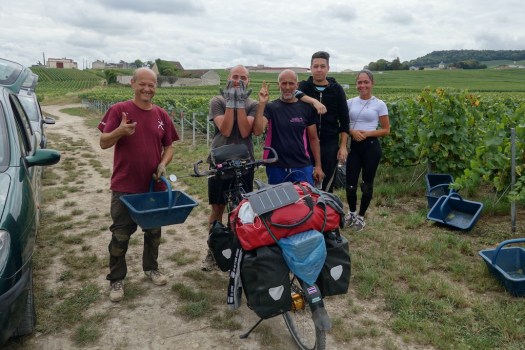 Previous Image Next Image DSC04232 The friendly bunch who offered me a few glasses of Champagne in the field and told me more about the harvesting process.