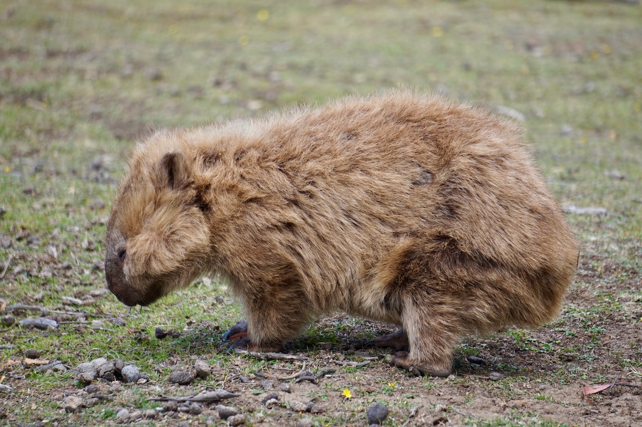 Previous Image Next Image DSC05291 Wombat. Those on Maria Island have longer hair and are a bit lighter in color as their family on the main land.
