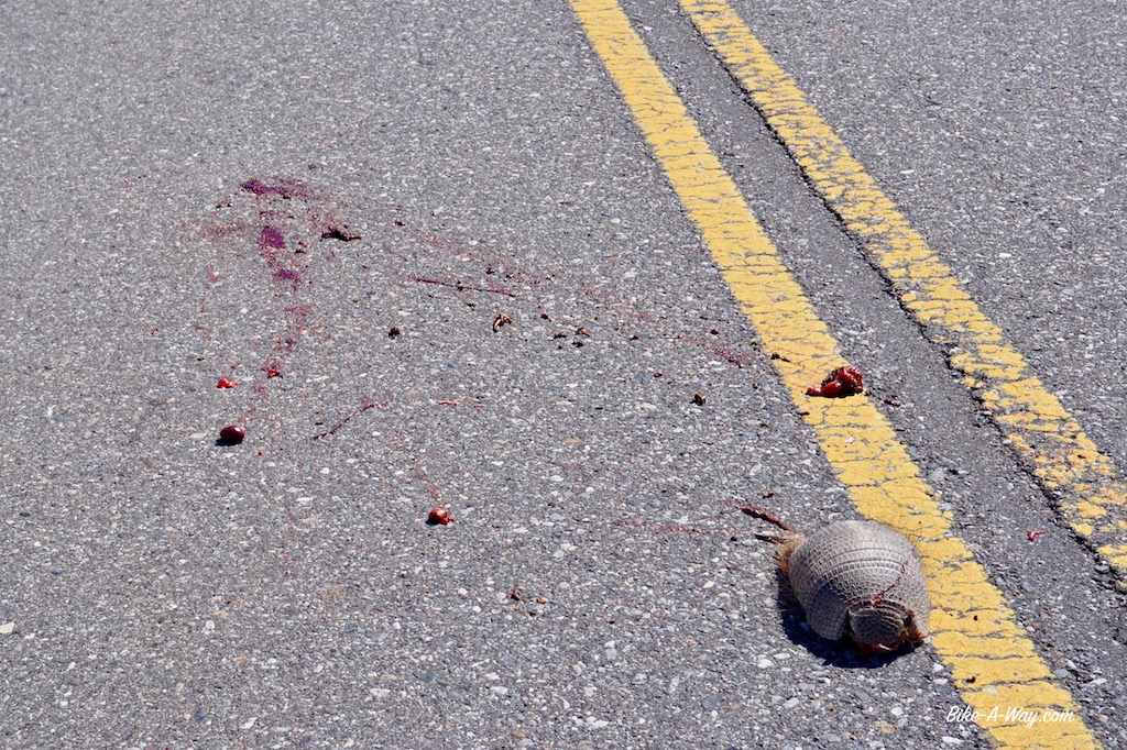 This guy was still alive 30 seconds ago. He was crossing the road in a nice straight line. A car came from the other side, and it’s driver must have seen him. If not, I pointed it out to him. But he didn’t slow down the slightest little bit and just smashed his head off. These guys run pretty fast, so if he slowed down 3 seconds, he would be alive. All this ‘accidental’ road kill is already sad enough, but here they do it on purpose. Just like speeding at centimeters from cyclists, while there’s no traffic coming from the other side. They just do it for fun. And after almost 3.000 kilometer here, I noticed these drivers actually do know how to veer around an obstacle. If there’s a pothole in the road, they can do it. I even noticed the concept of ‘anticipation’ isn’t completely alien to them. When there’s a pothole in their lane, and a car coming from the other side, they slow down a bit, so they can then go around the pothole. But not so for cyclists or animals. Their suspension is more important. Fuckers.