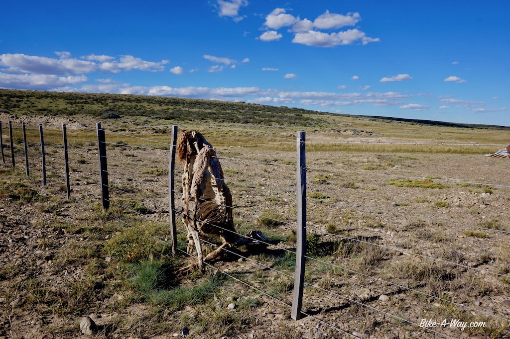 I complained about all the fences before, but here I see for the first time they use barb wire, for which I see no reason (to keep sheep inside ??? – no barb wire needed). At several points, I saw guanaco’s who didn’t make it and must have suffered a horrible, long and painful death. And again … for what reason ??
