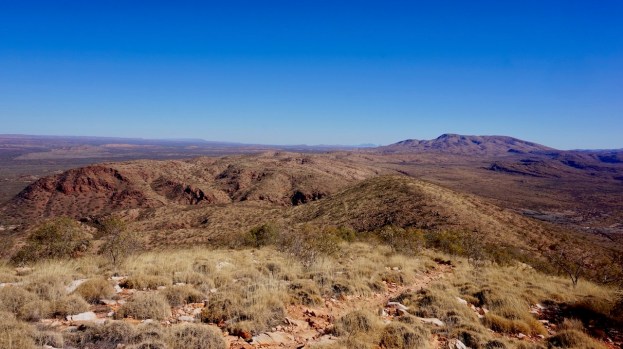 Of course, arriving at the junction towards Redbank Gorge, I couldn’t resist the call of the mountain, so I turned the handle bars and rode the very bad track down towards the gorge and the beginning of the hike. Next day I hiked the 16 kilometer return trip to the top of Mount Sonders. glad I did, wonderful view over the West MacDonnell Ranges.
