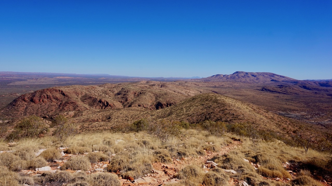 Of course, arriving at the junction towards Redbank Gorge, I couldn’t resist the call of the mountain, so I turned the handle bars and rode the very bad track down towards the gorge and the beginning of the hike. Next day I hiked the 16 kilometer return trip to the top of Mount Sonders. glad I did, wonderful view over the West MacDonnell Ranges.