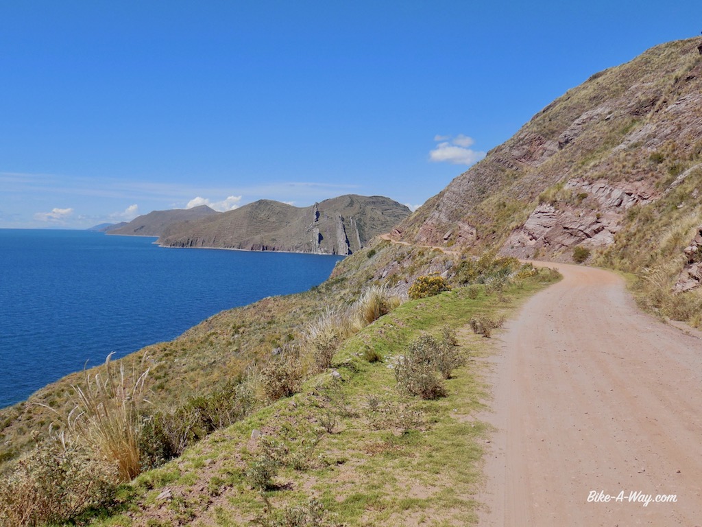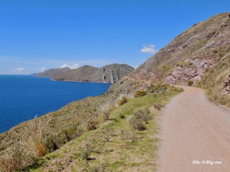 The road along the peninsula in the Tititcaca lake.
